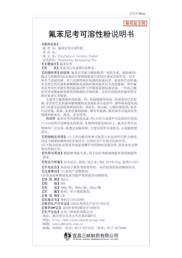 用于巴氏杆菌和大肠杆菌所致的细菌性疾病。
